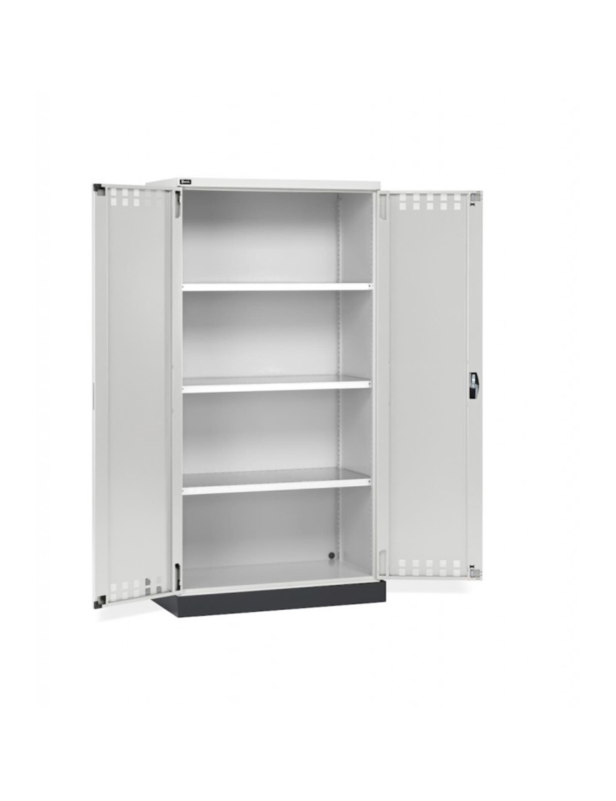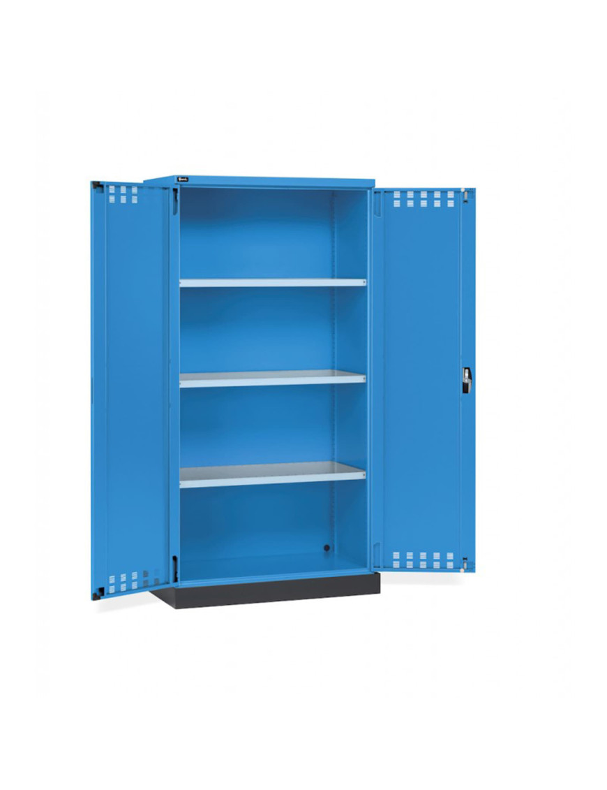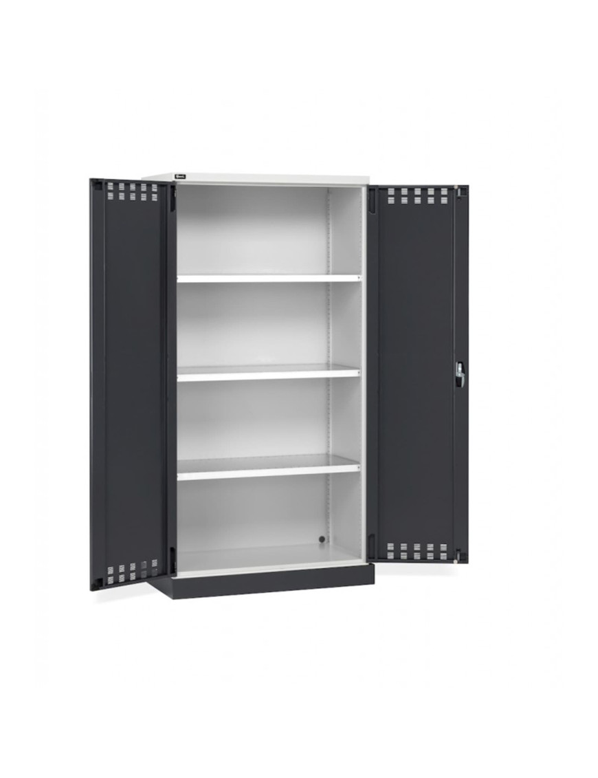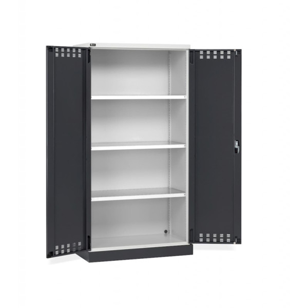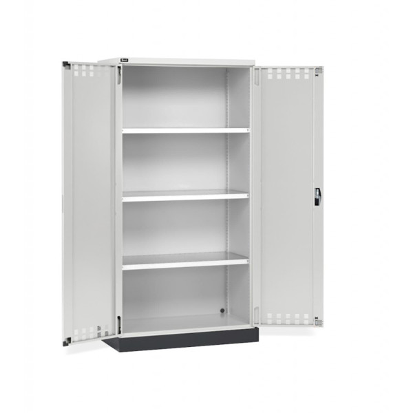 L'armadio è dotato di ante fessurate cm 54x27 che consentono una corretta ventilazione. La vasca di raccolta sottostante è stagna e raccoglie eventuali liquidi fuoriusciti, prevenendo danni e contaminazioni