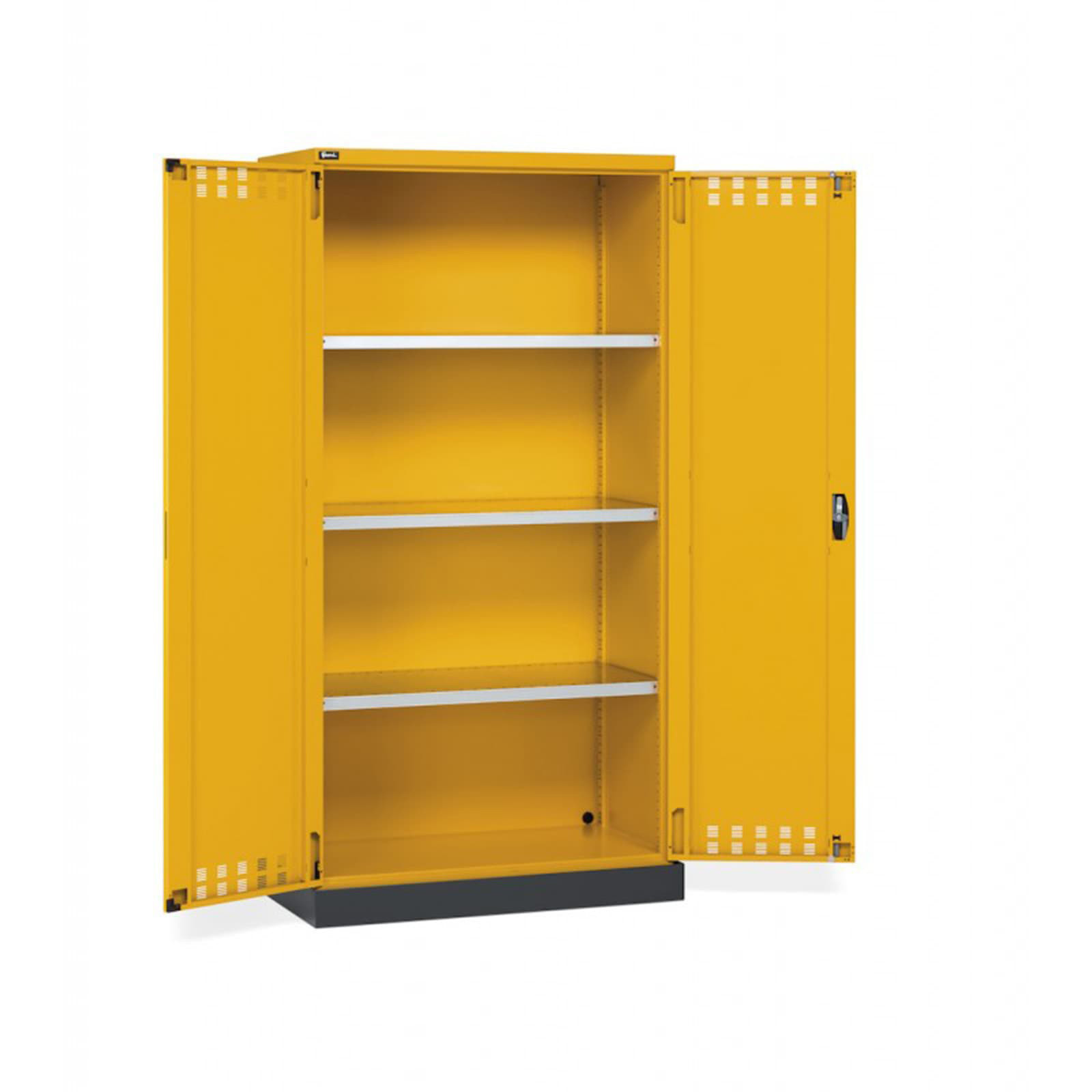 Armadio giallo con ante a battente fessurate e vasca di raccolta 104,8 x 202,7 x 60 cm