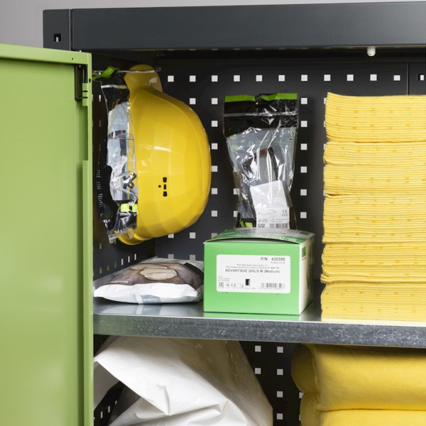 • Alla base è presente una vasca stagna esterna da 62 litri, ideale per raccogliere eventuali perdite derivanti da contenitori danneggiati