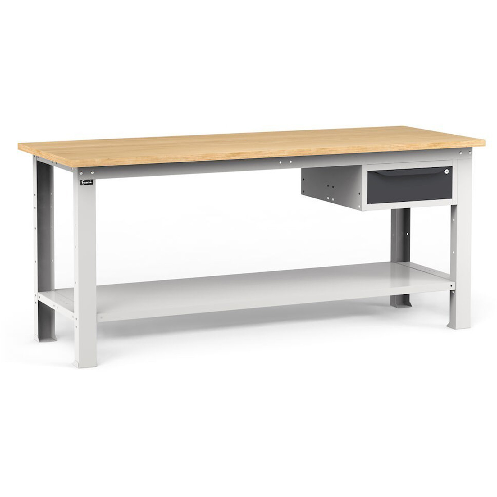 Banco da lavoro con cassetti ad altezza fissa e piano in legno multistrato
