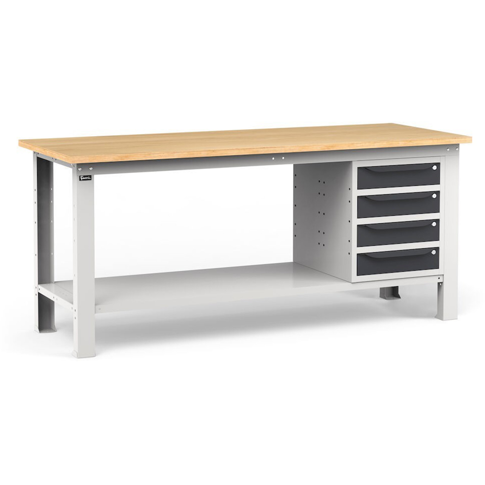 Banco da lavoro con cassetti ad altezza fissa e piano in legno multistrato