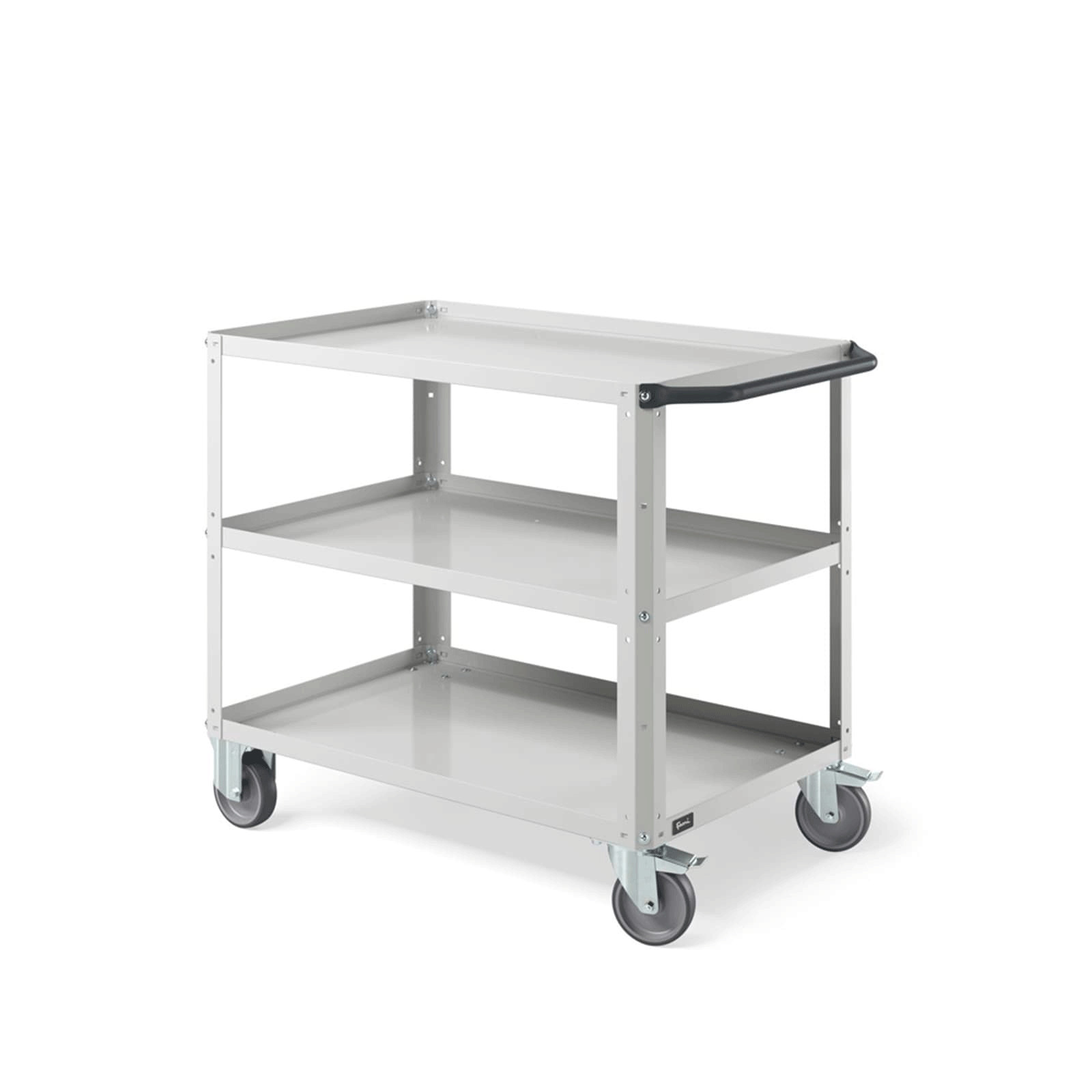 Carrello large grigio per magazzino con piano in acciaio - 3 ripiani