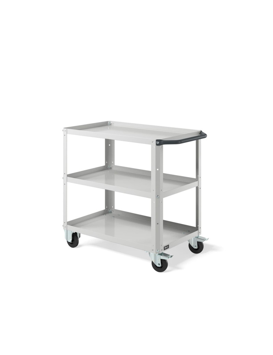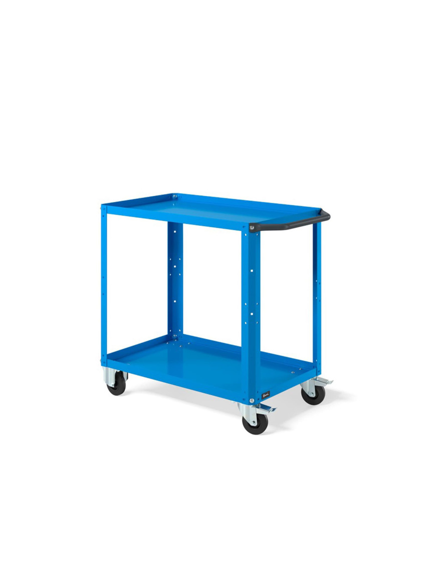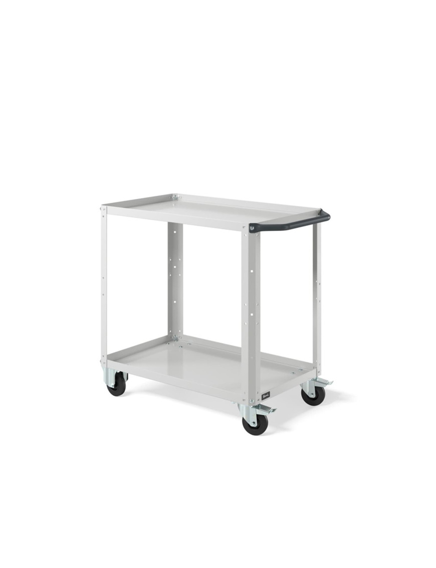 Carrello per magazzino con struttura robusta e piano in acciaio aggiuntivo, progettato per lo spostamento ordinato di materiali, componenti e utensili all’interno di magazzini, logistiche, negozi e aree produttive