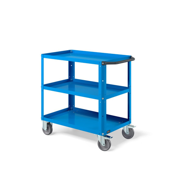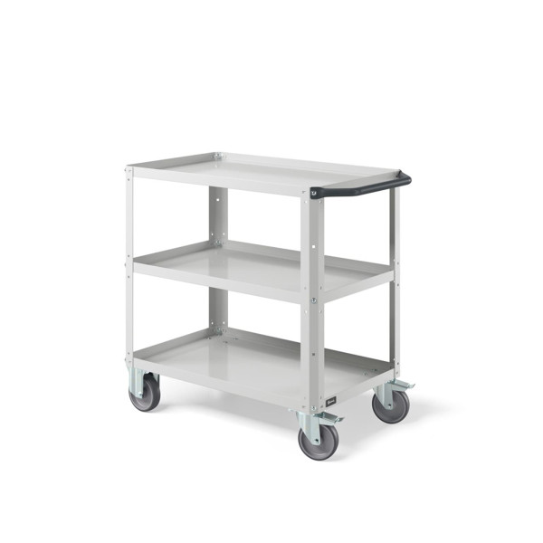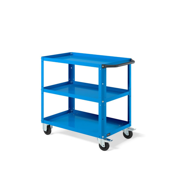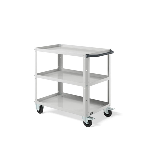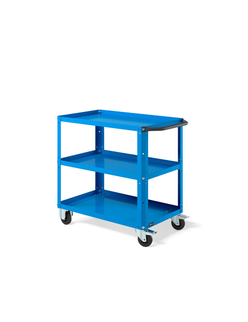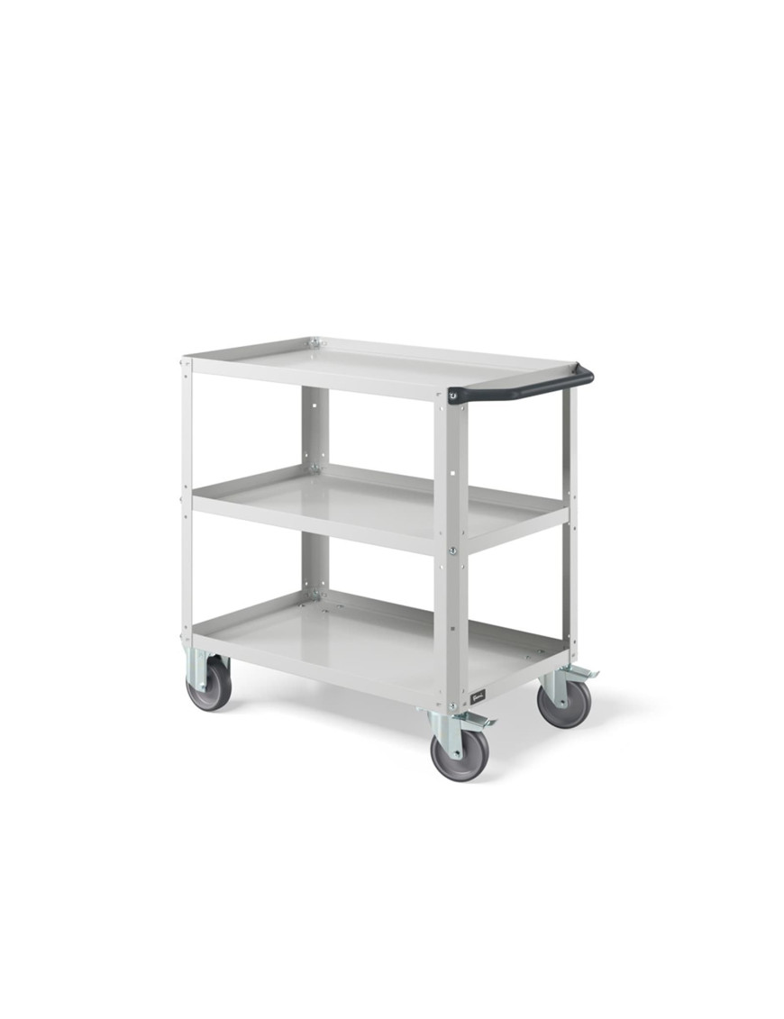 Carrello per magazzino con struttura robusta e piano in acciaio aggiuntivo, progettato per lo spostamento ordinato di materiali, componenti e utensili all’interno di magazzini, logistiche, negozi e aree produttive
