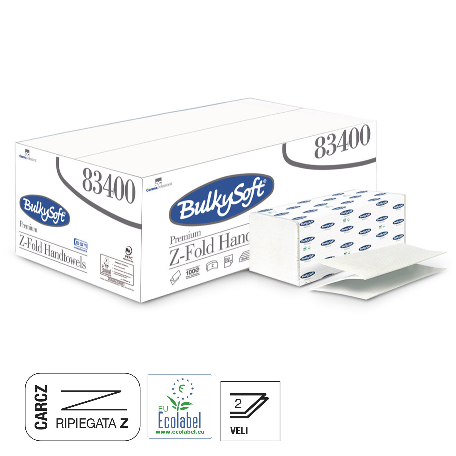 • Carta asciugamani in ovatta di pura cellulosa a 2 veli