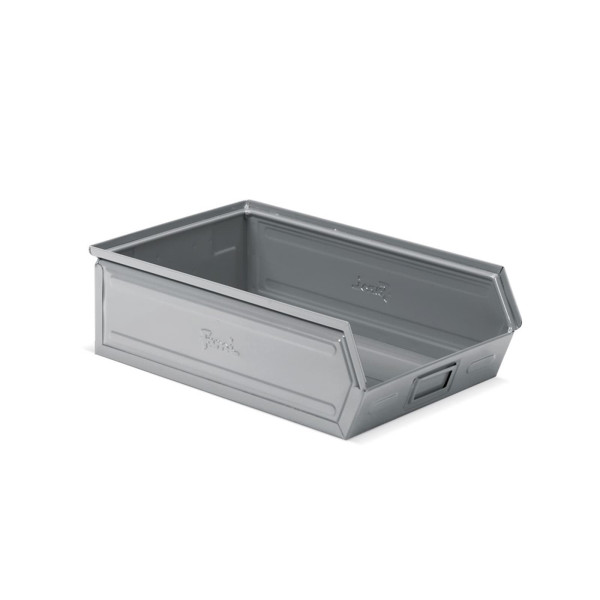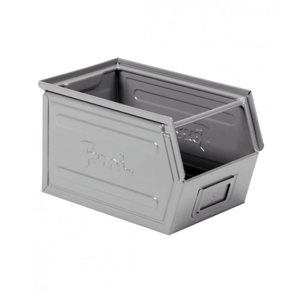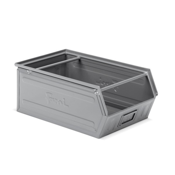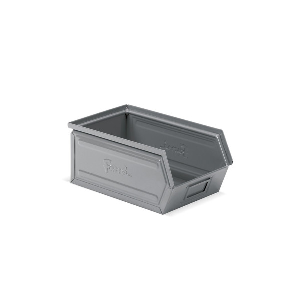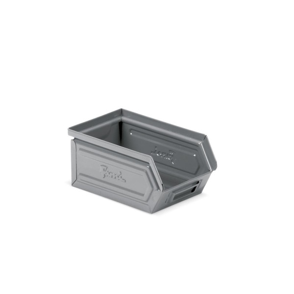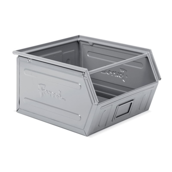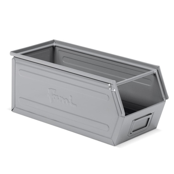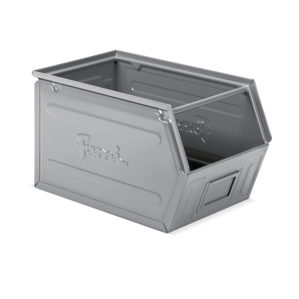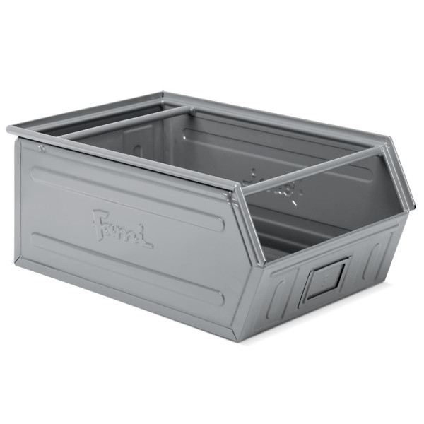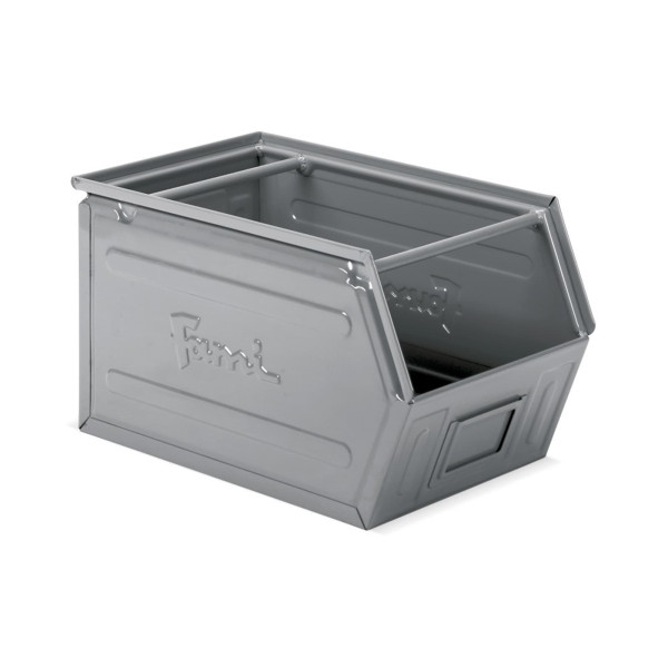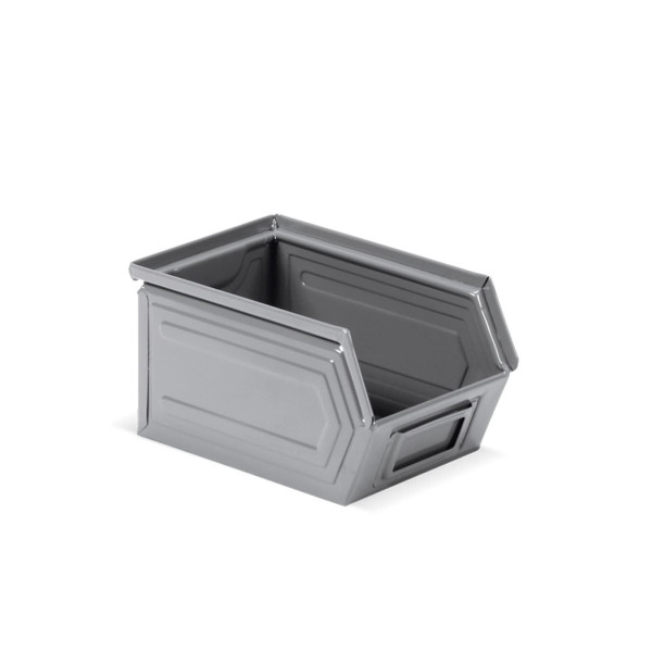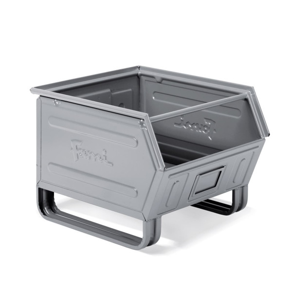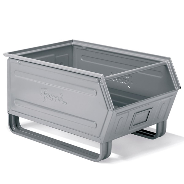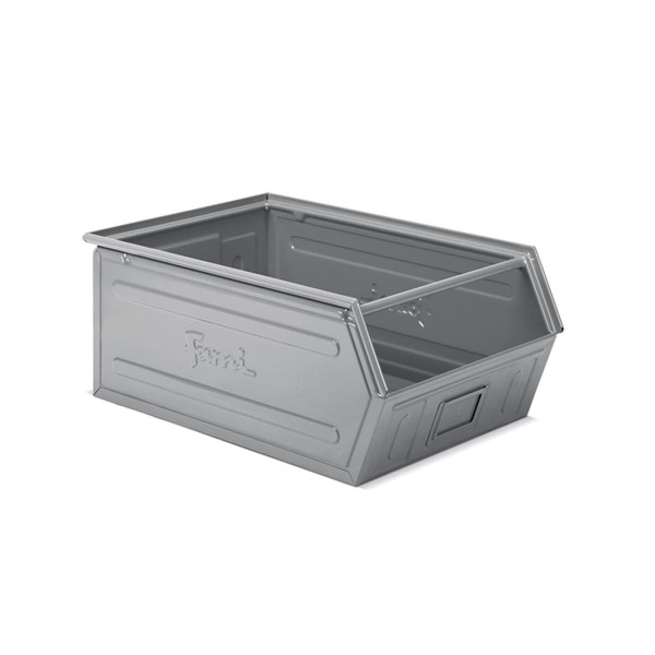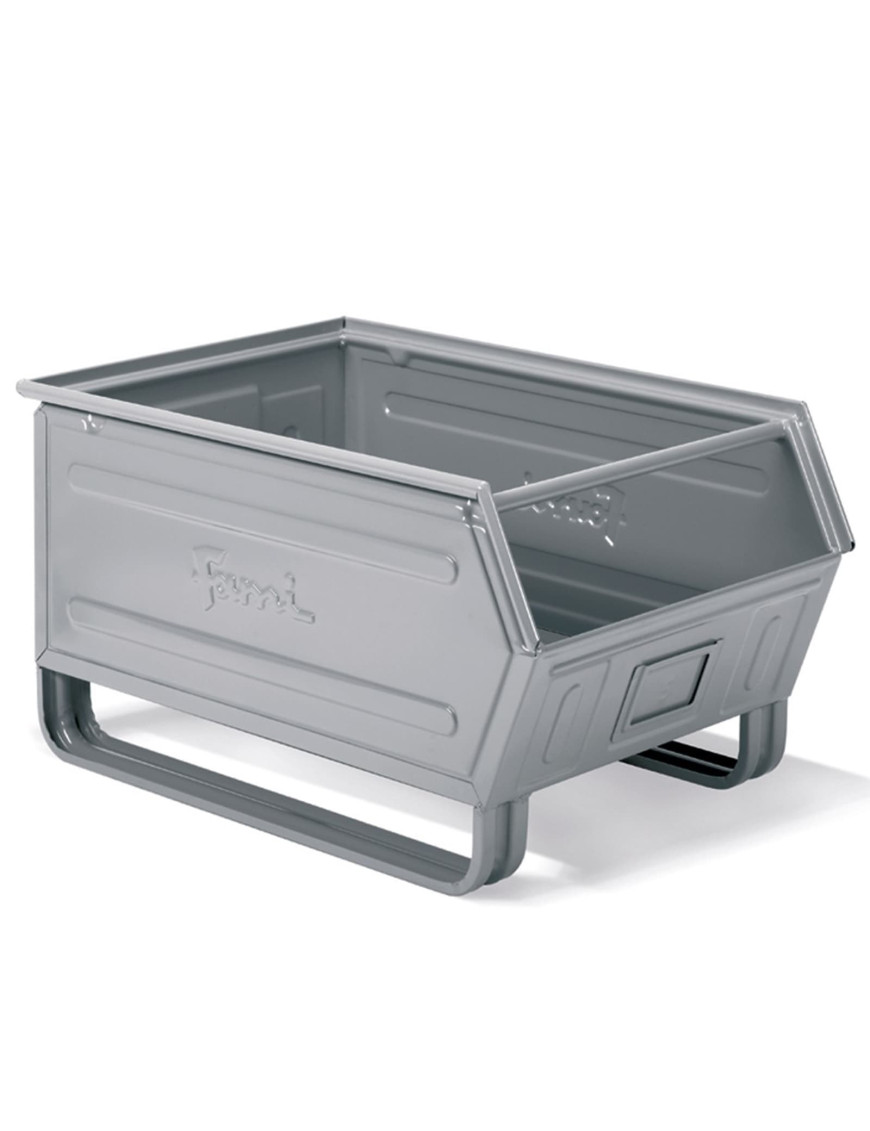 • Contenitori metallici a bocca di lupo con fronte aperto, sovrapponibili per ottimizzare lo spazio in magazzini, officine e reparti produttivi