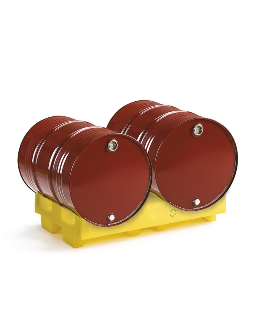 Supporto per fusti monolitico, posizionabile sopra vasche di raccolta per contenere eventuali sversamenti nocivi ed evitare il contatto con il suolo