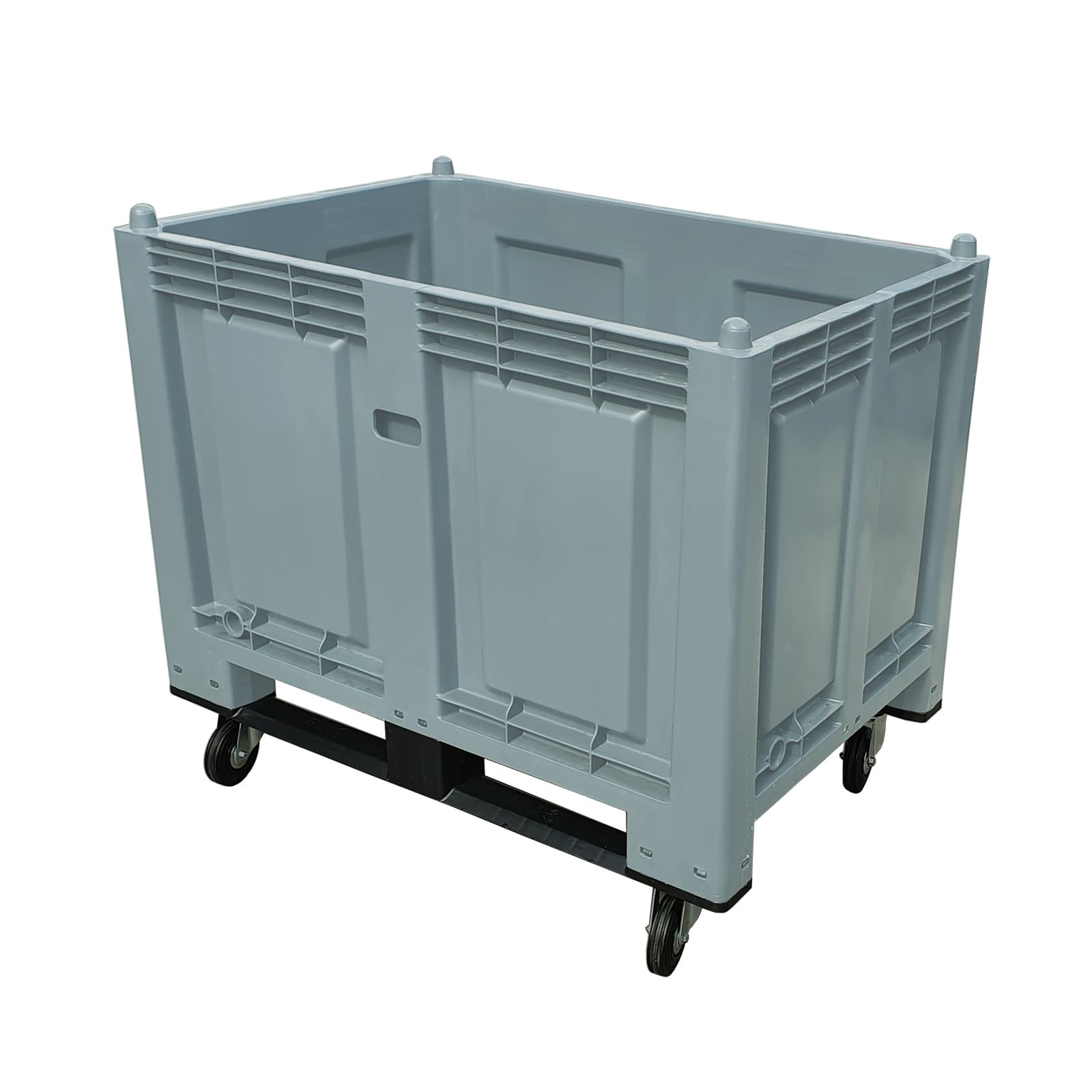 Cargopallet industriale con portello in PE 80x120 cm da 600 lt portata 500 kg - grigio industriale con due travette e ruote