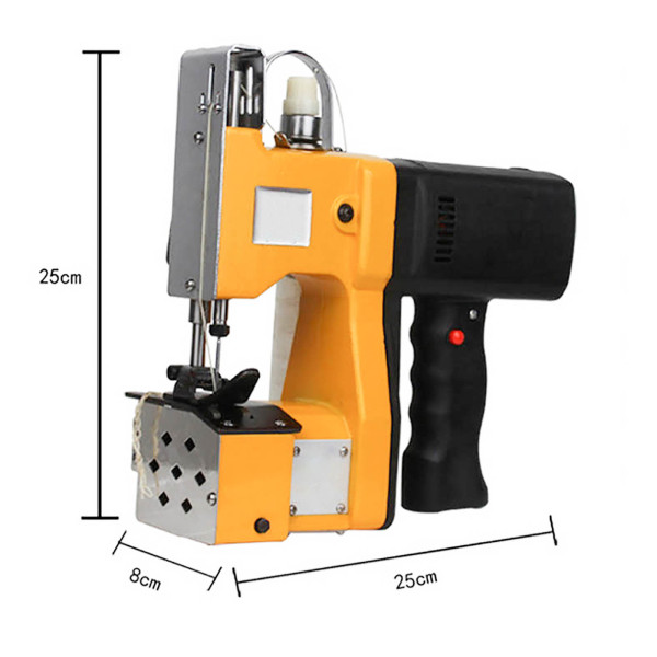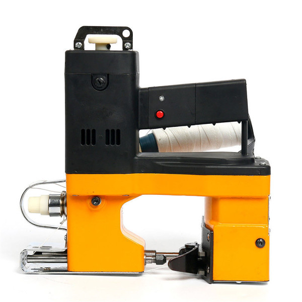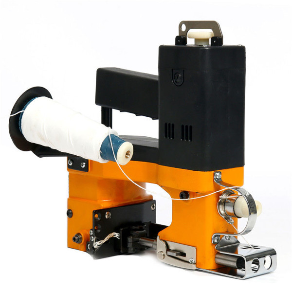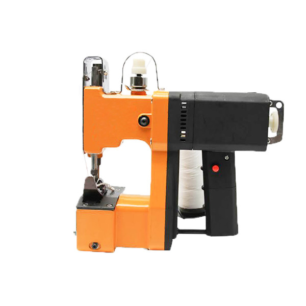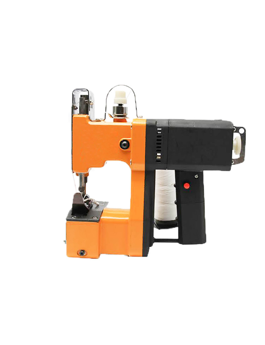 • Cucitrice portatile per sacchi con struttura in metallo, impugnatura ergonomica in plastica, trasmissione a moto alternato, chiusura del punto a catenella, taglio filo automatico e regolazione della tensione