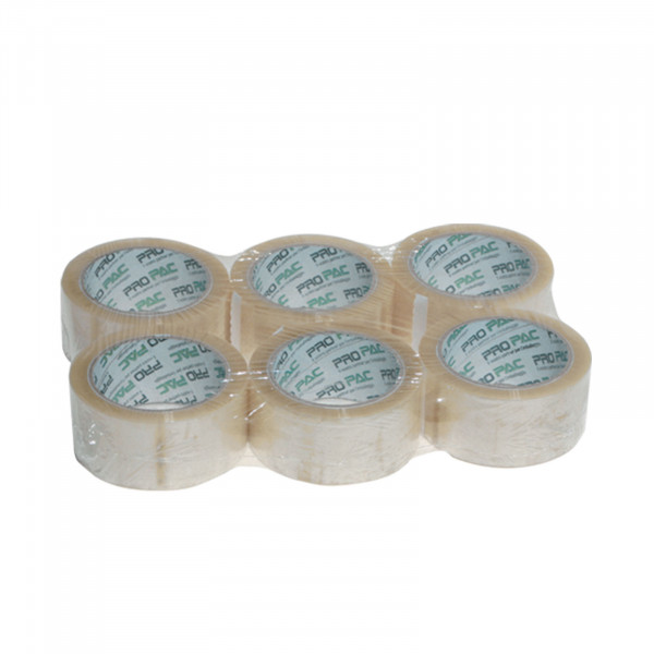Minipack da 6 rotoli di nastro adesivo in PPL, progettato per la chiusura di scatole e imballi in cartone in contesti ad alta operatività come fine linea produzione, magazzini, logistica, trasporti e piattaforme e-commerce