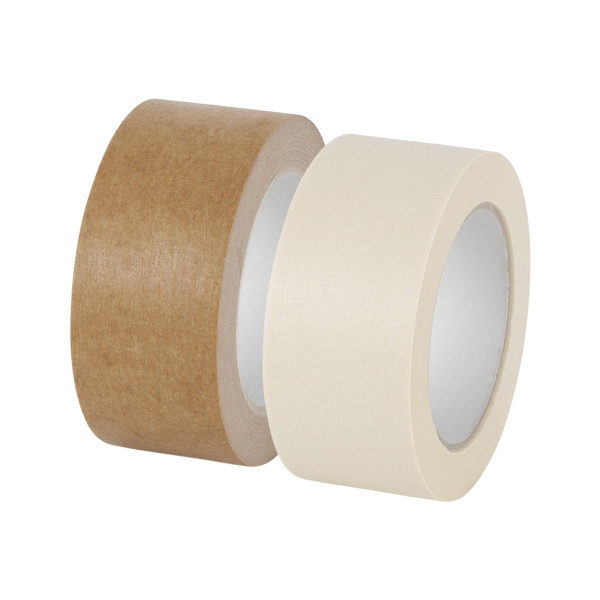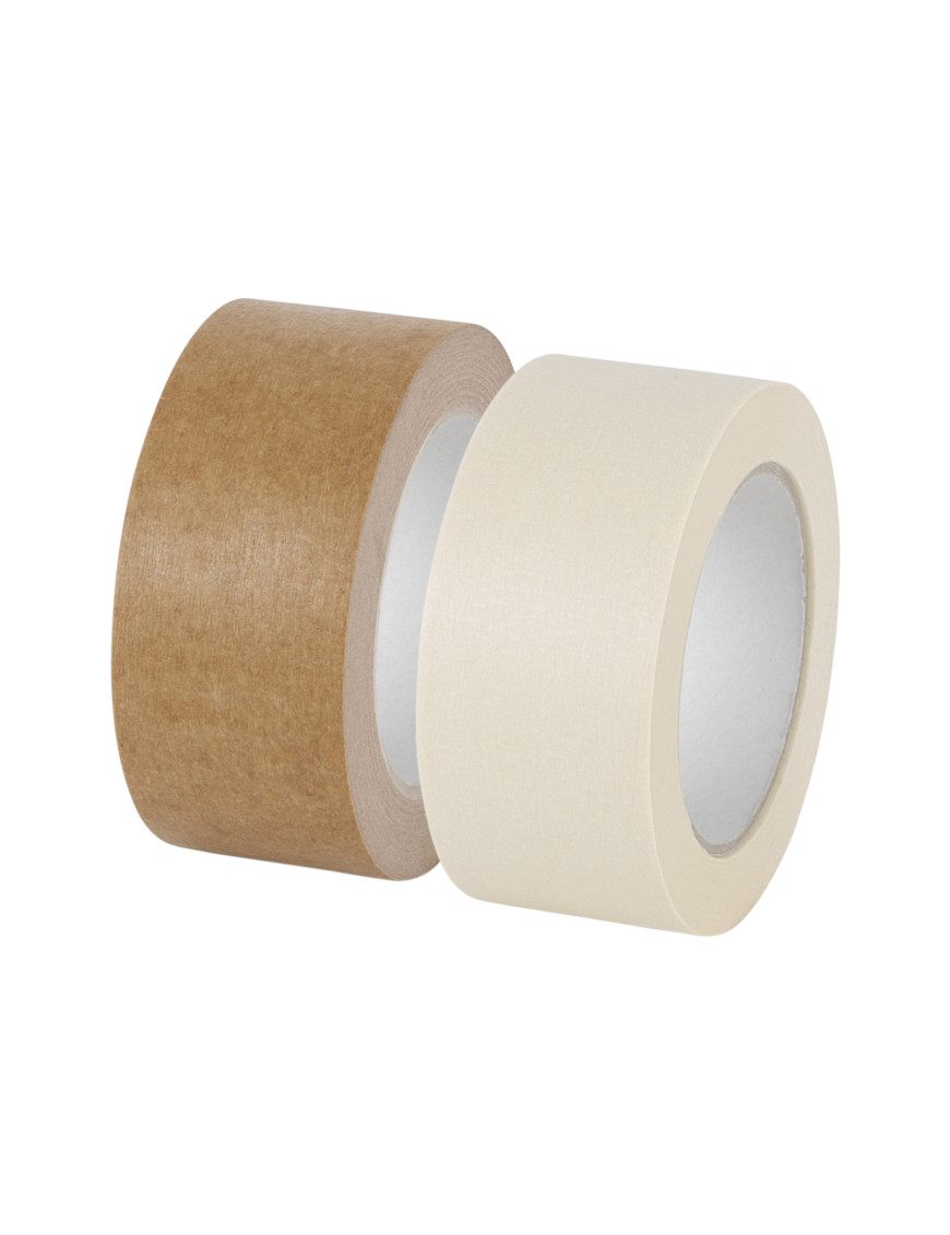 • Nastro adesivo in carta per imballaggio con supporto da 60 g/m² e collante hot melt ad alta adesività, disponibile nei colori avana e bianco