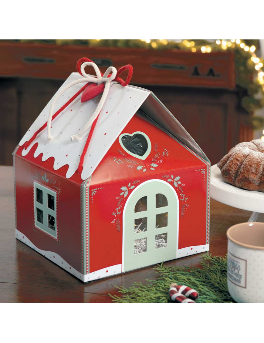 • La forma a casetta e la decorazione vivace conferiscono un aspetto distintivo al packaging, differenziandosi dalle tradizionali confezioni regalo