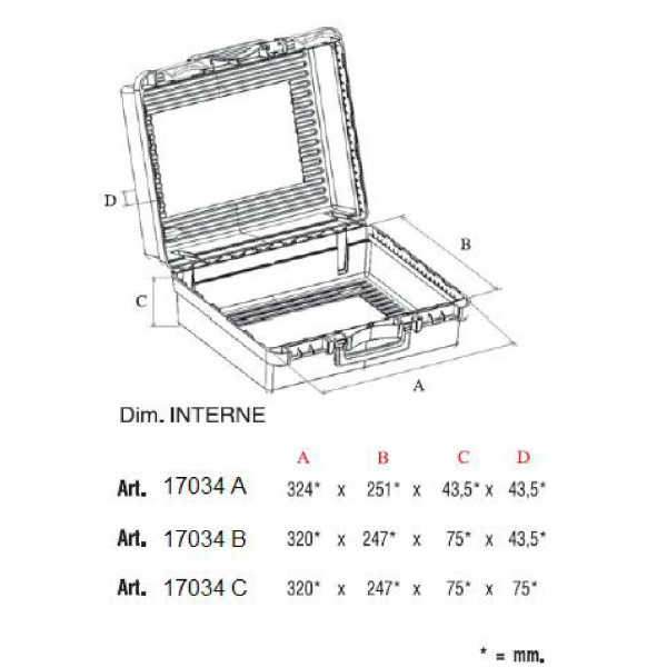 • Valigetta 17034 per il trasporto e la protezione di oggetti pesanti. Inoltre, offre una soluzione per organizzare attrezzature e strumenti professionali